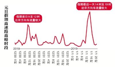 出京高峰期間,京藏高速、京承高速、京新高速、京港澳高速等部分路段車流集中,特別是京藏高速、京新高速交通壓力將較往年有所增加;1月1日(假期最后一天)16時左右,高速公路將出現進京方向的車流高峰。在返程高峰時段,預計京藏高速、京承高速、京港澳高速、通燕高速等交通壓力較大。