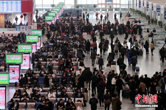 資料圖:高鐵已開售春運(yùn)車票,車站內(nèi)人頭攢動(dòng)。中新社記者 張遠(yuǎn) 攝