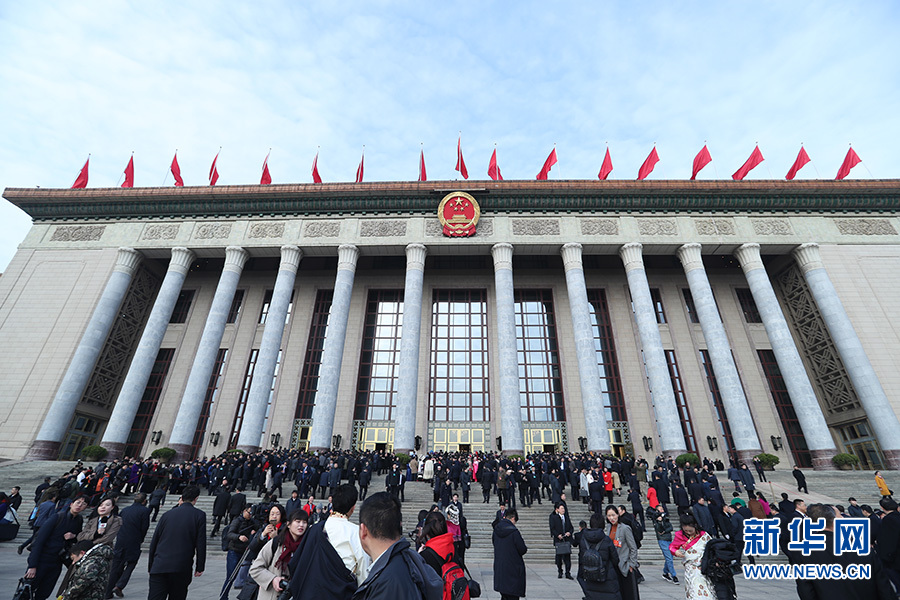 ??? 3月5日,第十三屆全國人民代表大會第一次會議在北京人民大會堂開幕,圖為人民大會堂外景。?新華網(wǎng)/中國政府網(wǎng) 翟子赫?攝