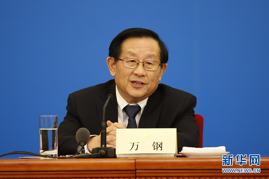 民主黨派中央和全國工商聯領導人記者會3月6日下午在人民大會堂金色大廳舉行,邀請民革中央主席萬鄂湘、民盟中央主席丁仲禮、民建中央主席郝明金、民進中央主席蔡達峰、農工黨中央主席陳竺、致公黨中央主席萬鋼、九三學社中央主席武維華、臺盟中央主席蘇輝、全國工商聯主席高云龍回答記者提問。圖為致公黨中央主席萬鋼。新華網/中國政府網 陳杰 攝