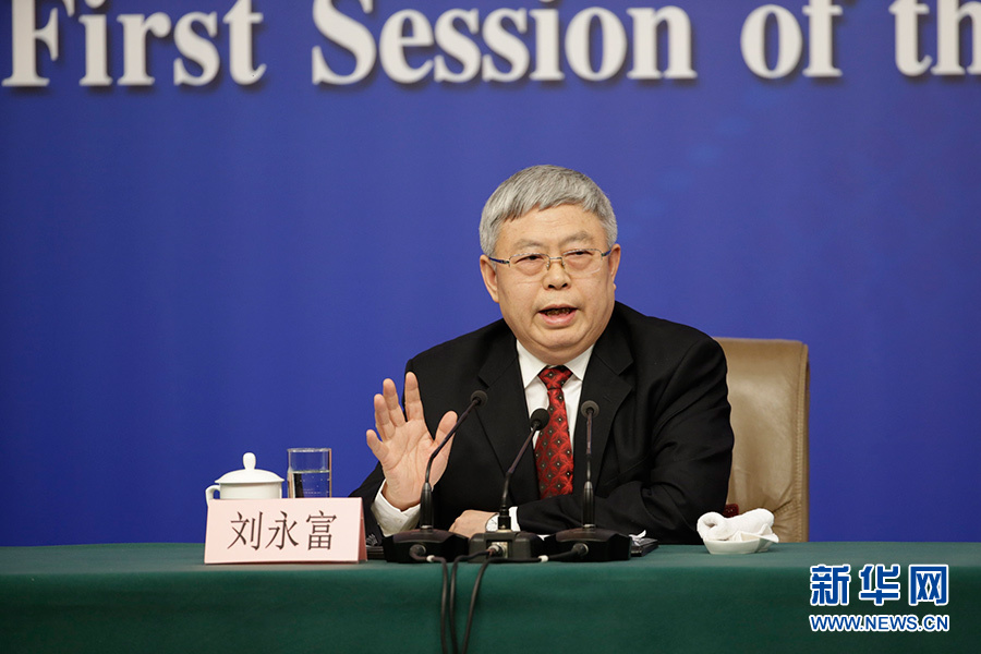 十三屆全國人大一次會議新聞中心于3月7日在梅地亞中心多功能廳舉行記者會,邀請國務院扶貧辦主任劉永富就“打好精準脫貧攻堅戰”的相關問題回答中外記者的提問。圖為劉永富回答記者提問。新華網/中國政府網 陳杰 攝