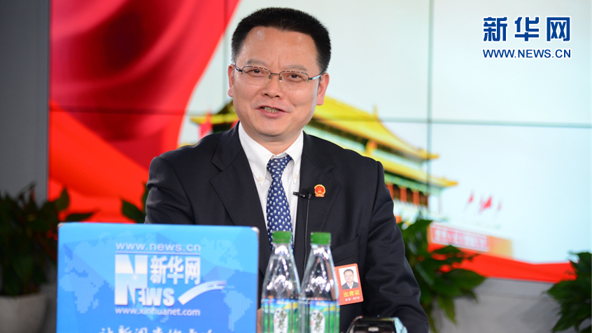 全國(guó)人大代表、池州市委副書記、市長(zhǎng)雍成瀚做客新華網(wǎng)2018全國(guó)兩會(huì)特別訪談。新華網(wǎng)楊濛攝