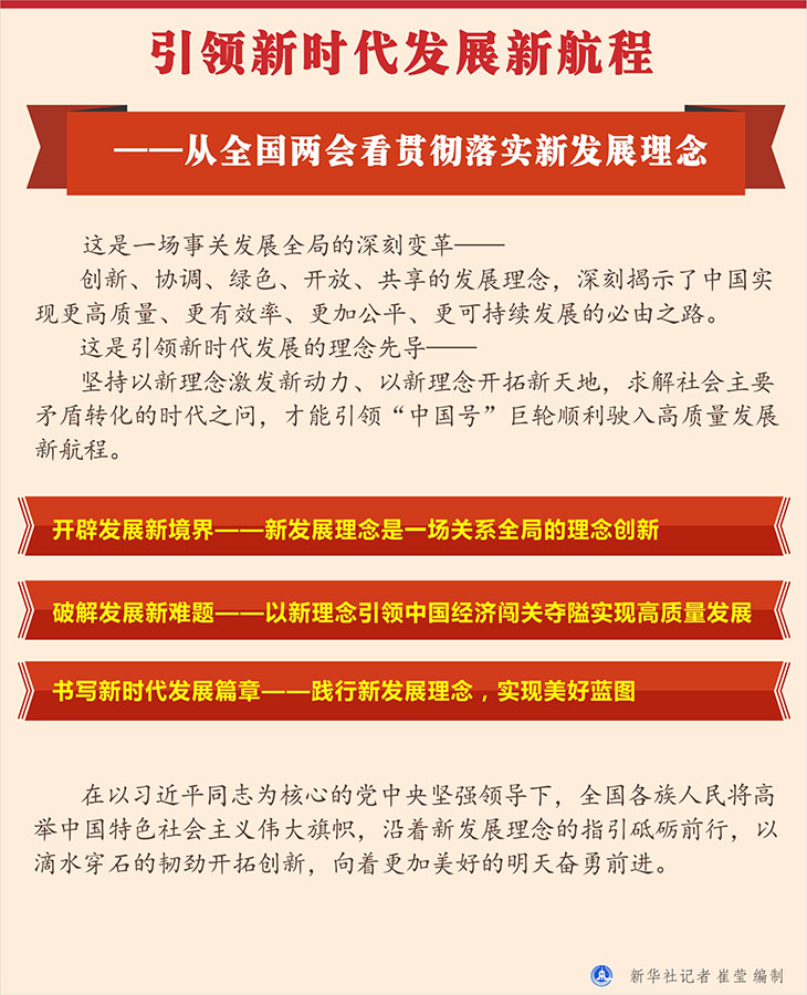 新華社北京3月8日電 題:引領新時代發(fā)展新航程——從全國兩會看貫徹落實新發(fā)展理念