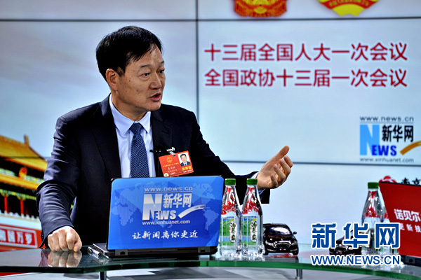 全國人大代表、牧原食品股份有限公司董事長秦英林做客新華網2018全國兩會特別訪談 新華網 李相博攝