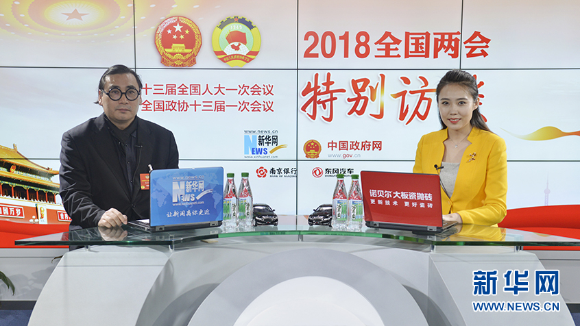 3月10日,全國政協委員、中國藝術研究院研究生院常務副院長劉萬鳴(左)做客新華網2018全國兩會特別訪談。新華網?李相博
