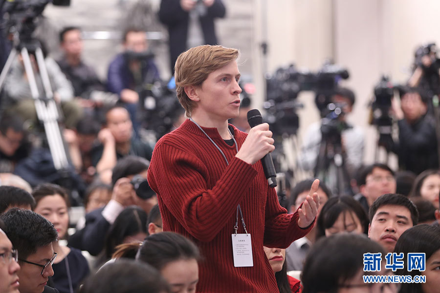 3月11日,十三屆全國人大一次會議新聞中心在人民大會堂一樓新聞發布廳舉行記者會,邀請十三屆全國人大一次會議秘書處法案組組長、全國人大常委會法工委主任沈春耀,法案組副組長、全國人大常委會法工委副主任鄭淑娜就“憲法修正案”相關問題回答中外記者提問。圖為路透社記者提問。新華網/中國政府網 翟子赫 攝