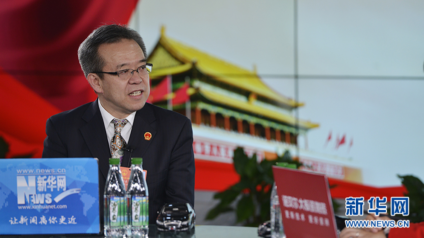圖為15日,全國人大代表、甘肅省酒泉市委書記吳仰東做客新華網2018全國兩會特別訪談。新華網 李相博攝