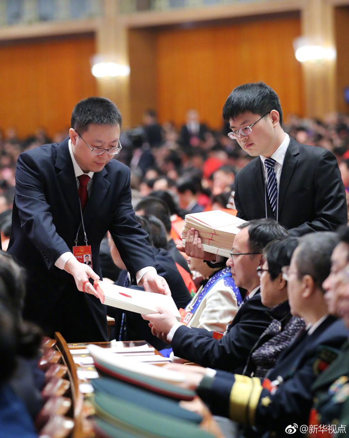 新華網(wǎng)北京3月17日電 3月17日,十三屆全國人大一次會(huì)議在北京人民大會(huì)堂舉行第五次全體會(huì)議,選舉新一屆國家領(lǐng)導(dǎo)人。這是工作人員發(fā)放選票。(據(jù)新華社“新華視點(diǎn)”微博報(bào)道 攝影:劉衛(wèi)兵) ?????