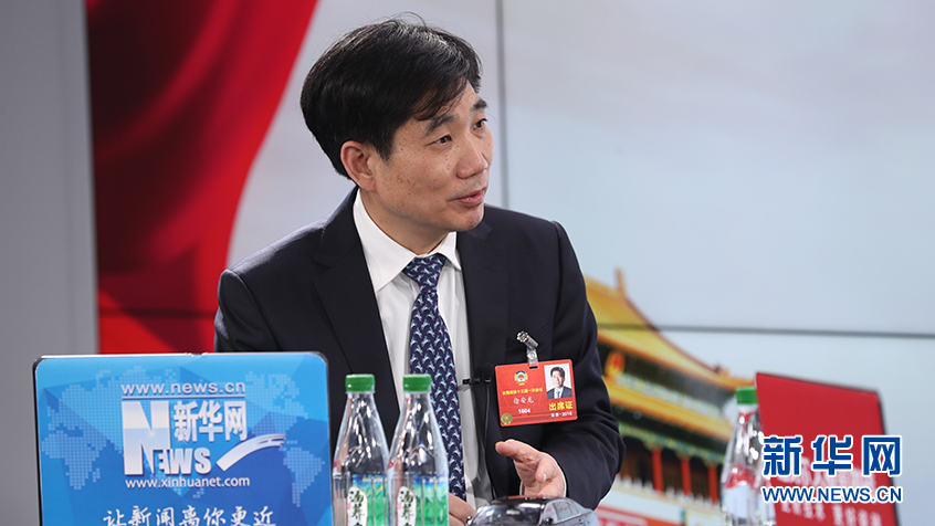 圖為全國政協委員、北京中醫藥大學校長徐安龍做客新華網2018全國兩會特別訪談。新華網郭小天攝