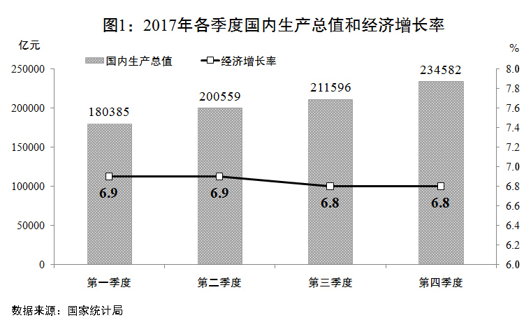 從2017年經(jīng)濟(jì)社會發(fā)展情況看,經(jīng)濟(jì)增長、就業(yè)、價(jià)格總水平、國際收支平衡等主要指標(biāo)保持在合理區(qū)間,創(chuàng)新驅(qū)動、民生保障等反映發(fā)展質(zhì)量和效益的指標(biāo)進(jìn)一步改善,總的完成情況是好的。