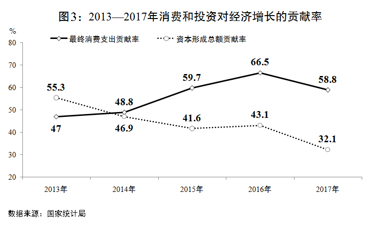 總的來看,2017年經(jīng)濟(jì)運(yùn)行穩(wěn)中向好態(tài)勢持續(xù)發(fā)展,決勝全面建成小康社會又向前邁出堅(jiān)實(shí)一步。在國內(nèi)外經(jīng)濟(jì)形勢極其錯(cuò)綜復(fù)雜的情況下,經(jīng)濟(jì)社會發(fā)展取得這樣的成績來之不易,這是以習(xí)近平同志為核心的黨中央堅(jiān)強(qiáng)領(lǐng)導(dǎo)的結(jié)果,是習(xí)近平新時(shí)代中國特色社會主義思想科學(xué)指引的結(jié)果,是黨的十八大以來黨中央、國務(wù)院一系列重大方針政策和重大舉措累積效應(yīng)的結(jié)果,更是全黨全國各族人民共同奮斗、各方面工作久久為功的結(jié)果。五年來,各地區(qū)各部門以習(xí)近平新時(shí)代中國特色社會主義思想為指引,堅(jiān)持穩(wěn)中求進(jìn)工作總基調(diào),貫徹新發(fā)展理念,“十二五”規(guī)劃勝利完成,“十三五”規(guī)劃順利實(shí)施。一是經(jīng)濟(jì)實(shí)力顯著增強(qiáng)。國內(nèi)生產(chǎn)總值從2012年的54萬億元增加到82.7萬億元,年均增長7.1%,對世界經(jīng)濟(jì)增長的貢獻(xiàn)率超過30%。二是發(fā)展質(zhì)量和效益明顯提高。全國一般公共預(yù)算收入從11.7萬億元增至17.3萬億元。全員勞動生產(chǎn)率從人均7.3萬元提高到10萬元以上。居民人均可支配收入從1.7萬元增至2.6萬元,增速總體快于經(jīng)濟(jì)增長,城鄉(xiāng)居民收入倍差由2.88∶1下降至2.71∶1。單位國內(nèi)生產(chǎn)總值能耗降低20.9%。三是經(jīng)濟(jì)結(jié)構(gòu)發(fā)生重大變革。需求結(jié)構(gòu)“消費(fèi)超投資”,最終消費(fèi)對經(jīng)濟(jì)增長的貢獻(xiàn)率提高了近4個(gè)百分點(diǎn)。產(chǎn)業(yè)結(jié)構(gòu)“三產(chǎn)超二產(chǎn)”,服務(wù)業(yè)占國民經(jīng)濟(jì)的比重不斷上升。區(qū)域發(fā)展格局不斷優(yōu)化,新型城鎮(zhèn)化扎實(shí)推進(jìn),8000多萬農(nóng)業(yè)轉(zhuǎn)移人口成為城鎮(zhèn)居民。四是新舊動能加快接續(xù)轉(zhuǎn)換。供給側(cè)結(jié)構(gòu)性改革扎實(shí)推進(jìn),有效改善了市場供求關(guān)系和企業(yè)盈利狀況。創(chuàng)新驅(qū)動發(fā)展戰(zhàn)略深入實(shí)施,天宮、蛟龍、天眼、悟空、墨子、大飛機(jī)等重大科技成果相繼問世,新產(chǎn)業(yè)新業(yè)態(tài)新模式層出不窮,傳統(tǒng)產(chǎn)業(yè)通過改造升級煥發(fā)生機(jī)。五是市場主體活力持續(xù)釋放。營商環(huán)境不斷優(yōu)化,產(chǎn)權(quán)保護(hù)不斷加強(qiáng),公平競爭市場環(huán)境進(jìn)一步健全。五年來,國務(wù)院部門行政審批事項(xiàng)削減44%,中央層面核準(zhǔn)的企業(yè)投資項(xiàng)目減少90%,中央政府定價(jià)項(xiàng)目縮減80%。大眾創(chuàng)業(yè)萬眾創(chuàng)新蓬勃發(fā)展,全國日均新登記企業(yè)從5400戶上升到1.66萬戶,活躍度保持在70%左右,經(jīng)濟(jì)社會發(fā)展內(nèi)生動力不斷增強(qiáng)。六是改革開放全面深化。重要領(lǐng)域和關(guān)鍵環(huán)節(jié)改革取得突破性進(jìn)展,主要領(lǐng)域改革主體框架基本確立。“一帶一路”倡議由構(gòu)想逐步變?yōu)楝F(xiàn)實(shí),貿(mào)易大國地位更加鞏固,利用外資保持穩(wěn)定增長,我國對世界經(jīng)濟(jì)發(fā)展的影響力大幅提升。七是民生福祉得到有效保障。城鎮(zhèn)新增就業(yè)6600萬人以上,脫貧攻堅(jiān)取得決定性進(jìn)展,貧困人口減少6800多萬。覆蓋城鄉(xiāng)居民的社會保障體系基本建立,基本公共服務(wù)均等化程度不斷提高。八是生態(tài)環(huán)境建設(shè)保護(hù)力度持續(xù)加大。大氣、水、土壤污染防治行動取得明顯成效,重點(diǎn)區(qū)域PM2.5平均濃度下降30%左右,生態(tài)文明制度體系加快形成,環(huán)境狀況得到改善。