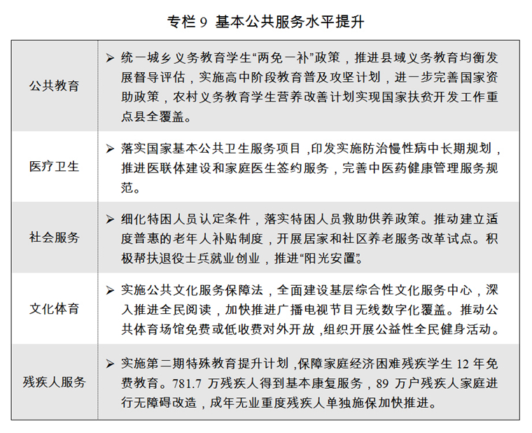 (九)提高保障和改善民生水平。大力推進(jìn)社會領(lǐng)域供給側(cè)結(jié)構(gòu)性改革,著力補(bǔ)齊公共服務(wù)短板,努力滿足人民日益增長的美好生活需要。