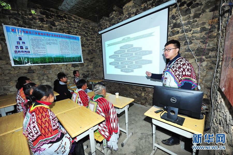 在貴州省畢節(jié)市威寧彝族回族苗族自治縣石門鄉(xiāng)團(tuán)結(jié)村七里沖組脫貧攻堅(jiān)講習(xí)點(diǎn),村支書胡鈞溥在向當(dāng)?shù)厝罕娭v解十九大精神及相關(guān)的扶貧政策(2017年10月23日攝)。逐夢征程,需要價值追求的引領(lǐng)和精神力量的支撐。 “社會主義核心價值觀決定著各民族共有精神家園的發(fā)展方向,必須在各民族中大力培育和踐行”“以社會主義核心價值觀為引領(lǐng),深入挖掘優(yōu)秀傳統(tǒng)農(nóng)耕文化蘊(yùn)含的思想觀念、人文精神、道德規(guī)范”“引導(dǎo)全社會積極培育和踐行社會主義核心價值觀,樹立良好道德風(fēng)尚”……今年全國兩會期間,習(xí)近平總書記多次強(qiáng)調(diào)培育和踐行社會主義核心價值觀。兩會上,社會主義核心價值觀被寫入國家根本大法。浩渺行無極,揚(yáng)帆但信風(fēng)。兩會結(jié)束后,代表委員們奔赴大江南北,與各地干部群眾一起,以實(shí)際行動推動社會主義核心價值觀建設(shè)落細(xì)落小落實(shí),持續(xù)構(gòu)筑中國精神、中國價值、中國力量,為劈波斬浪的“中國號”巨輪揚(yáng)起團(tuán)結(jié)奮進(jìn)的精神風(fēng)帆。新華社記者 陶亮 攝