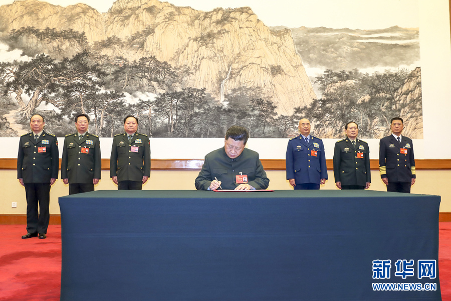 1月4日,中央軍委軍事工作會議在北京召開。中共中央總書記、國家主席、中央軍委主席習近平出席會議并發表重要講話。這是習近平簽署中央軍委2019年1號命令,向全軍發布開訓動員令。 新華社記者 李剛 攝