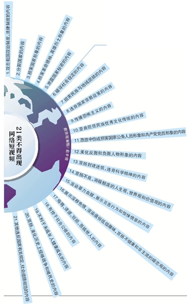 《規范》和《細則》針對網絡視聽領域存在的不足和薄弱環節,分別對開展短視頻服務的網絡平臺以及網絡短視頻內容審核的標準進行規范。《細則》明確了21類、100項內容,“喪文化”“一夜情”“非主流婚戀觀”等都不得出現在短視頻中。