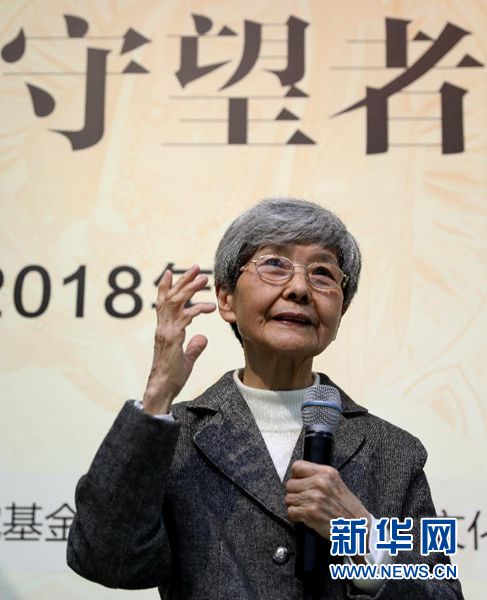 2018年3月30日,敦煌研究院名譽(yù)院長(zhǎng)樊錦詩(shī)在“敦煌文化守望者”全球志愿者派遣計(jì)劃首期出征儀式上致辭。 新華社記者 劉穎 攝