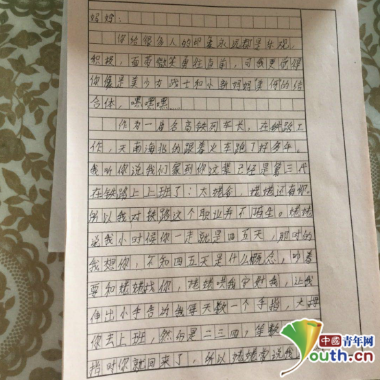 一年一度的春運(yùn)又開始了,13歲的女孩小嘉琪早已習(xí)慣了媽媽不能在家的春節(jié)。小嘉琪的媽媽是哈大高鐵車隊(duì)的列車長。今年她給媽媽寫了一封信,這封信里有埋怨、有理解、更有女兒對媽媽的愛……不禁讓人淚目。