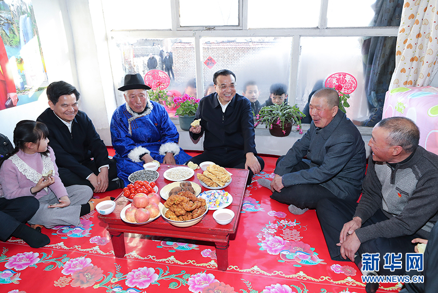 2月1日至2日,中共中央政治局常委、國務院總理李克強在內蒙古自治區烏蘭察布市考察。這是2月1日,李克強在察哈爾右翼前旗三岔口鄉十二洲村慰問貧困戶。 新華社記者 姚大偉 攝