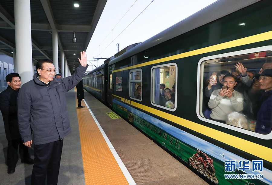 李克強來到集寧南火車站,登上停靠的綠皮列車察看春運保障。乘客們喜出望外,紛紛向總理問好,李克強特別詢問返鄉農民工工資是否拿到、節后外出工作是否有保證。得知列車要經停26站、開行30多小時,李克強說,我們既要繼續發展高鐵,也要有停站多、票價低的普通列車,以滿足群眾不同需求。李克強還聽取了內蒙古高鐵建設打算,要求有關部門支持,帶動區域協調發展和民生改善。