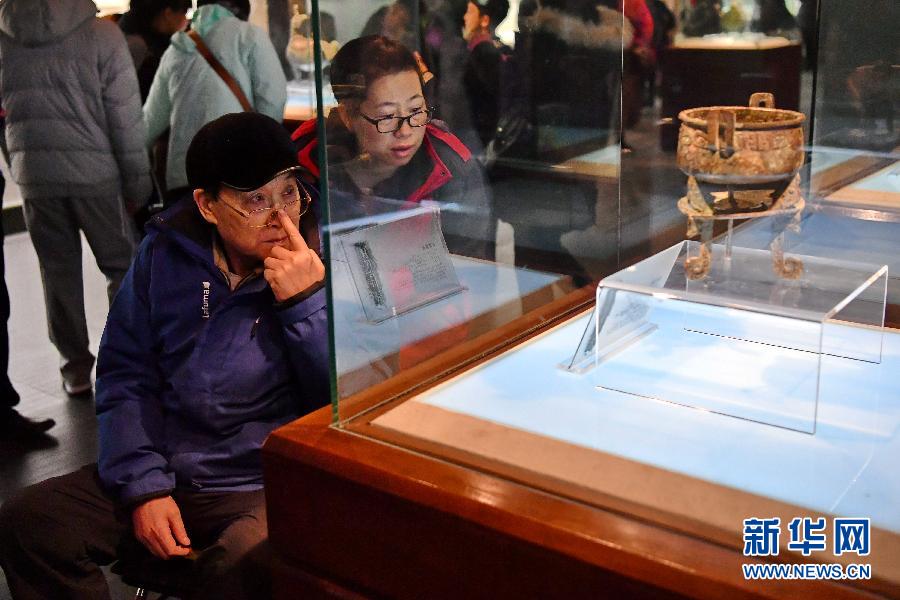 2月8日,觀眾在山西博物院參觀。 春節(jié)期間,不少太原市民選擇來到博物館參觀,度過一個充實的假期。 新華社記者 曹陽 攝