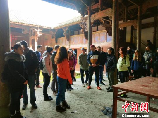 外國(guó)游客參觀中國(guó)古建筑 武義提供