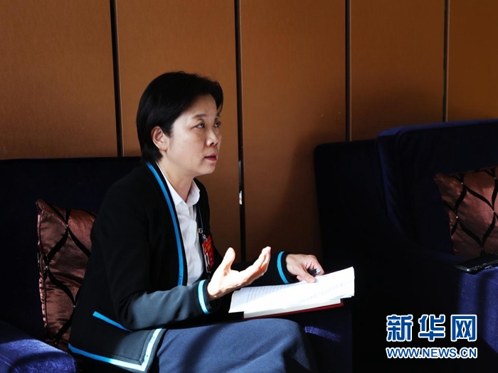 全國政協委員、民進中央委員、天津市教委副主任孫惠玲接受記者采訪。