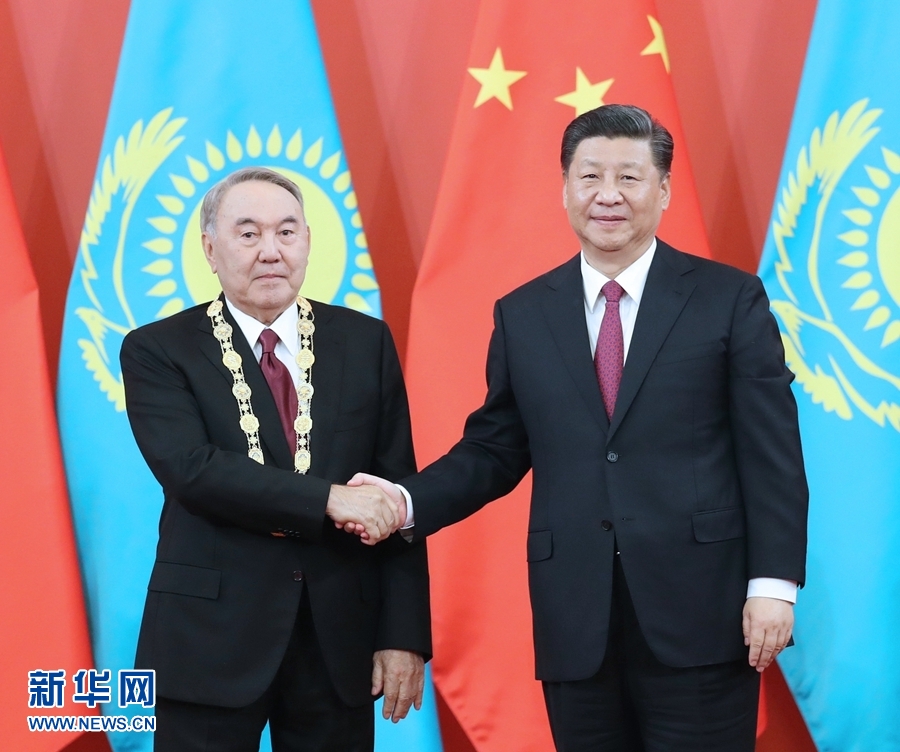 新華社北京4月28日電(記者白潔、馬巖)國家主席習近平28日在人民大會堂中央大廳為哈薩克斯坦首任總統納扎爾巴耶夫舉行“友誼勛章”頒授儀式。