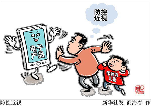 核心信息指出,長(zhǎng)時(shí)間或近距離盯著手機(jī)、電腦和電視等電子屏幕,是近視的原因之一。6歲以下兒童要盡量避免使用手機(jī)和電腦。家長(zhǎng)在孩子面前應(yīng)盡量少使用電子產(chǎn)品。