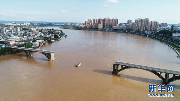 6月14日,從空中俯瞰垮塌的河源東江大橋(無人機拍攝)。新華社記者 王瑞平 攝