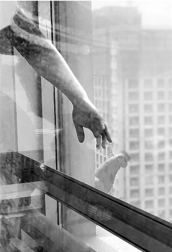 記者觀察了一下,玻璃幕墻外的橫梁其實(shí)并不寬,大約20厘米,最窄處只有10厘米。物業(yè)很擔(dān)心,“這么高的地方,無論是對(duì)業(yè)主,還是對(duì)這只雞來說,都不安全。”當(dāng)時(shí),他們就考慮怎么把雞給救下來。