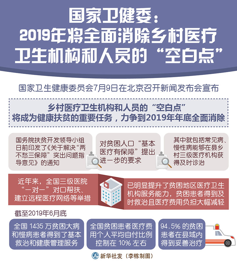 新華社北京7月9日電(記者屈婷、王秉陽)少數(shù)地區(qū)仍有衛(wèi)生室“空白村”,“三區(qū)三州”深度貧困地區(qū)有的鄉(xiāng)鎮(zhèn)缺少全科醫(yī)生……國家衛(wèi)生健康委員會(huì)9日在京召開新聞發(fā)布會(huì)宣布,像上述這些鄉(xiāng)村醫(yī)療衛(wèi)生機(jī)構(gòu)和人員的“空白點(diǎn)”,將成為健康扶貧的重要任務(wù),力爭到今年年底全面消除。