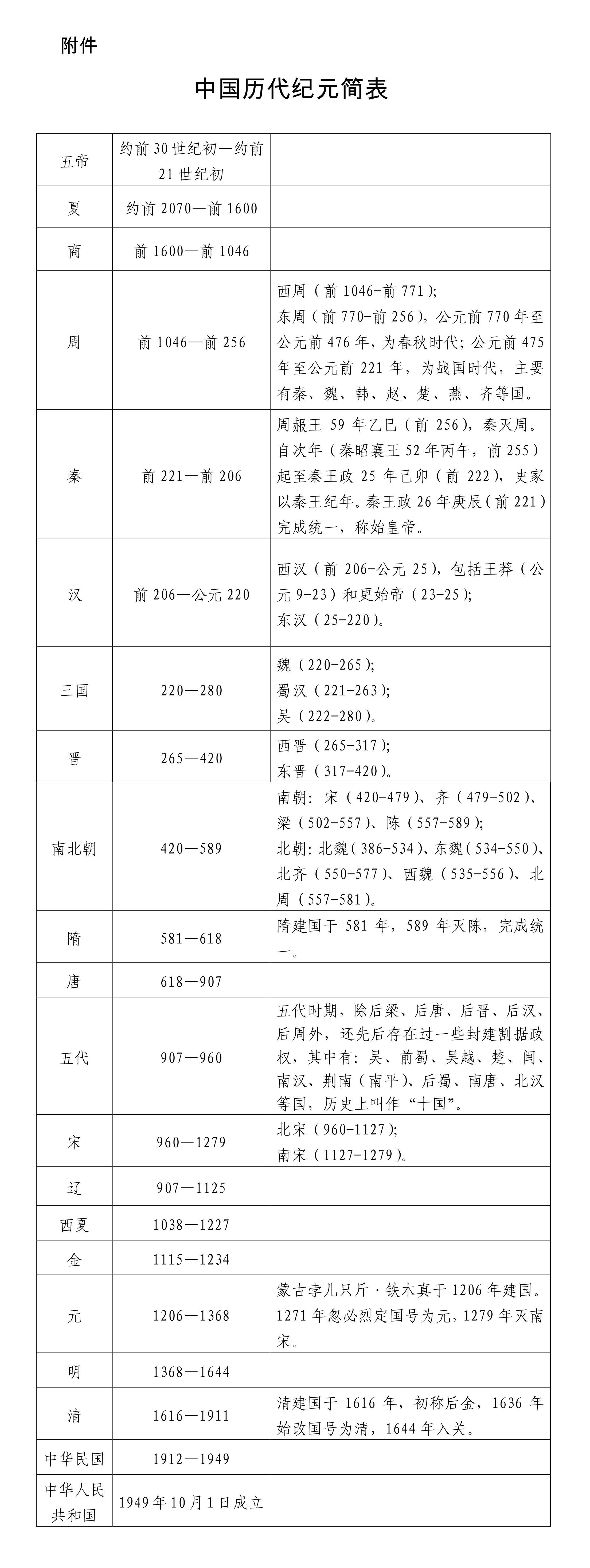 附件:中國歷代紀(jì)元簡(jiǎn)表