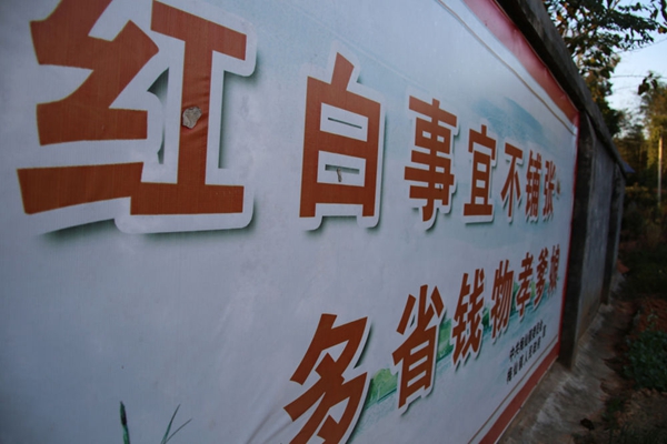 ▲湖南岳陽平江縣梅仙鎮(zhèn)石嶺村“治陋習(xí)、樹新風(fēng)”標(biāo)語(11月15日攝)。新華每日電訊記者 謝銳佳 攝