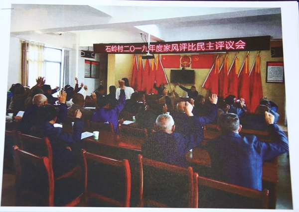 ▲湖南岳陽平江縣梅仙鎮(zhèn)石嶺村家風(fēng)評比現(xiàn)場(翻拍)。
