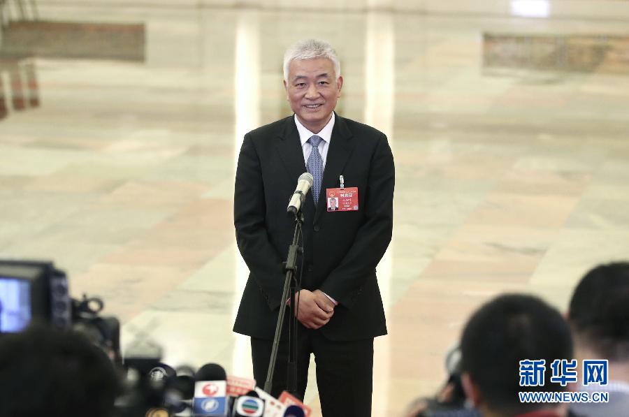 3月8日,十三屆全國人大二次會議在北京人民大會堂舉行第二次全體會議。這是科學技術部部長王志剛在“部長通道”接受采訪。新華社記者 金立旺 攝