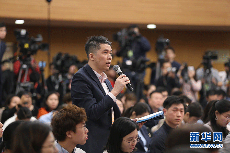 十三屆全國人大二次會議新聞中心3月9日(星期六)10時30分在梅地亞中心新聞發(fā)布廳舉行記者會,邀請商務部部長鐘山、副部長兼國際貿(mào)易談判副代表王受文、副部長錢克明就“促進形成強大國內(nèi)市場 推動全方位對外開放”相關問題回答中外記者提問。圖為中國日報記者提問。新華網(wǎng)/中國政府網(wǎng) 劉廈 攝