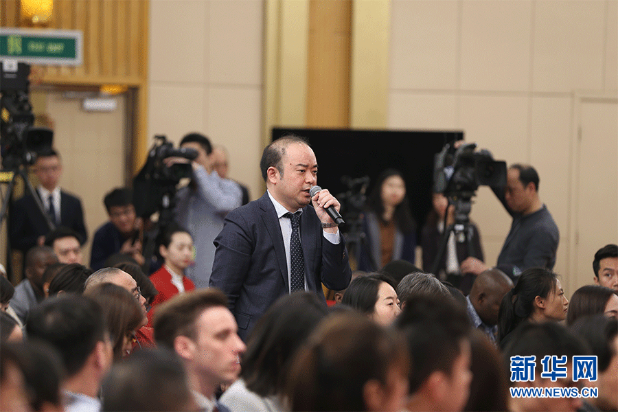 十三屆全國人大二次會議新聞中心3月9日(星期六)10時30分在梅地亞中心新聞發布廳舉行記者會,邀請商務部部長鐘山、副部長兼國際貿易談判副代表王受文、副部長錢克明就“促進形成強大國內市場 推動全方位對外開放”相關問題回答中外記者提問。圖為日本經濟新聞記者提問。新華網/中國政府網 劉廈 攝