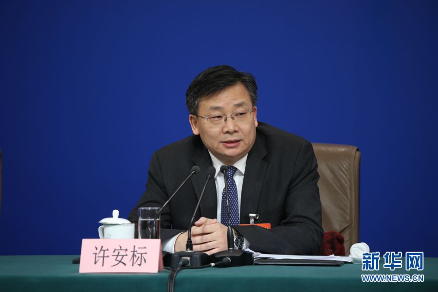 十三屆全國人大二次會議新聞中心3月9日在梅地亞中心新聞發布廳舉行記者會,邀請全國人大農業與農村委員會主任委員陳錫文、全國人大財政經濟委員會副主任委員烏日圖、全國人大常委會法制工作委員會副主任劉俊臣、全國人大常委會法制工作委員會副主任許安標、全國人大環境與資源保護委員會委員程立峰就“人大立法工作”相關問題回答記者提問。圖為全國人大常委會法制工作委員會副主任許安標。新華網/中國政府網 劉廈 攝