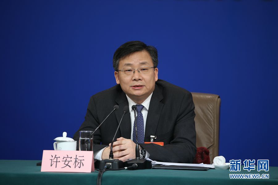 十三屆全國人大二次會議新聞中心3月9日在梅地亞中心新聞發(fā)布廳舉行記者會,邀請全國人大農(nóng)業(yè)與農(nóng)村委員會主任委員陳錫文、全國人大財(cái)政經(jīng)濟(jì)委員會副主任委員烏日圖、全國人大常委會法制工作委員會副主任劉俊臣、全國人大常委會法制工作委員會副主任許安標(biāo)、全國人大環(huán)境與資源保護(hù)委員會委員程立峰就“人大立法工作”相關(guān)問題回答記者提問。圖為全國人大常委會法制工作委員會副主任許安標(biāo)。新華網(wǎng)/中國政府網(wǎng) 劉廈 攝
