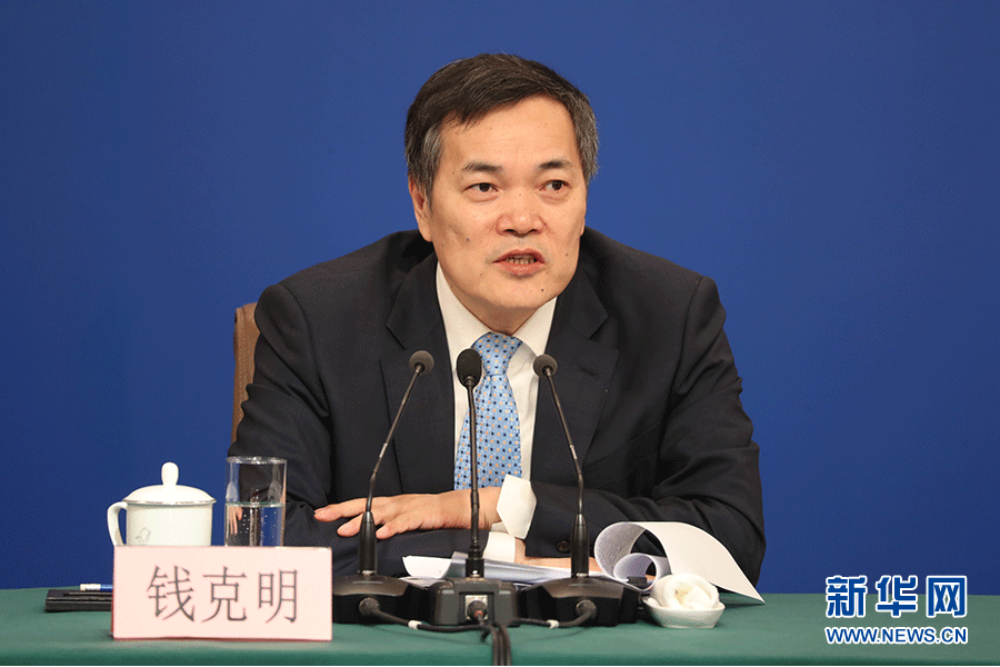 十三屆全國人大二次會議新聞中心3月9日(星期六)10時30分在梅地亞中心新聞發布廳舉行記者會,邀請商務部部長鐘山、副部長兼國際貿易談判副代表王受文、副部長錢克明就“促進形成強大國內市場 推動全方位對外開放”相關問題回答中外記者提問。圖為錢克明回答記者提問。新華網/中國政府網 陳杰 攝