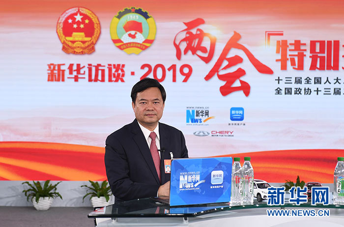 全國人大代表、百色市市長周異決做客新華網2019全國兩會特別報道。新華網 李相博攝