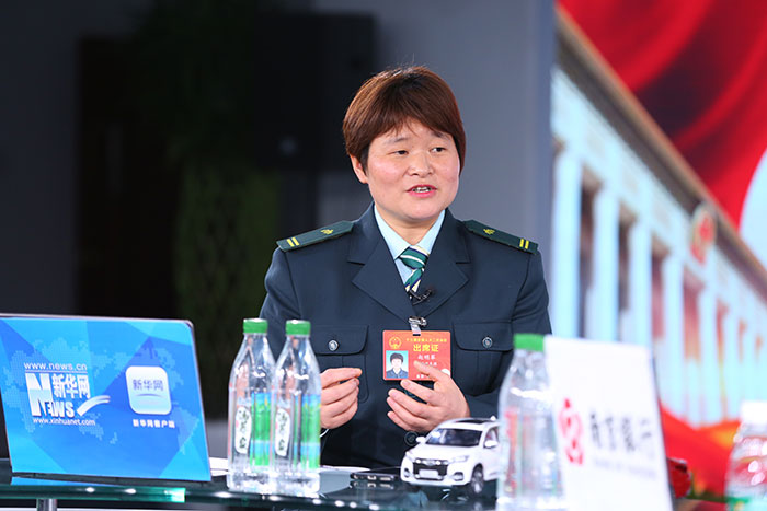 3月14日,全國人大代表、陜西省石泉縣郵政分公司鄉郵員趙明翠做客新華網2019全國兩會特別報道。新華網 陳延特攝
