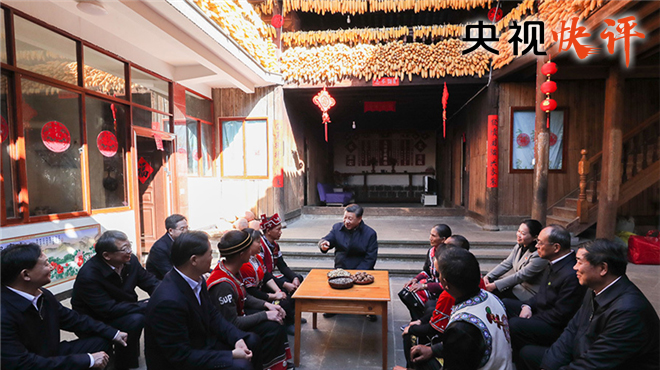 彩云之南,碧水藍天;滇池之畔,生機盎然。春節前夕,習近平總書記來到云南考察調研??倳浀酱迕窦也炜淳幼…h境,制作當地傳統食品大米粑粑,詢問春節前市場供應情況,與群眾話家常、問冷暖,并向全國人民致以新春祝福。