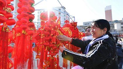 1月21日,在吉林省舒蘭市小城鎮四合村南陽屯,小城鎮黨委書記王閱(右)詢問民宿店主春節備貨情況。新華社記者 張楠 攝