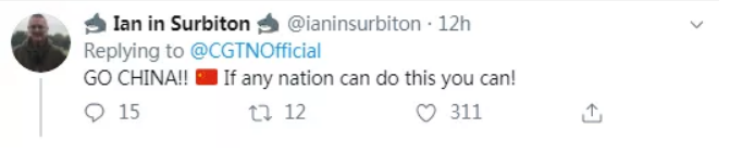 “如果有任何一個國家可以做到,那就是你們了!中國加油?。 ?/p>