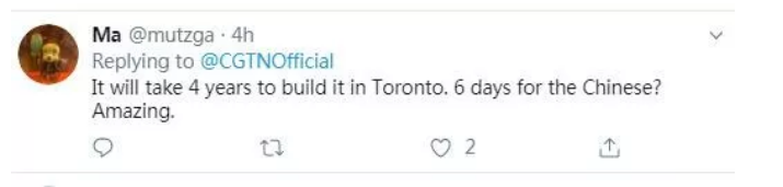 “這在多倫多至少得花4年吧,在中國只需要6天?難以置信!”