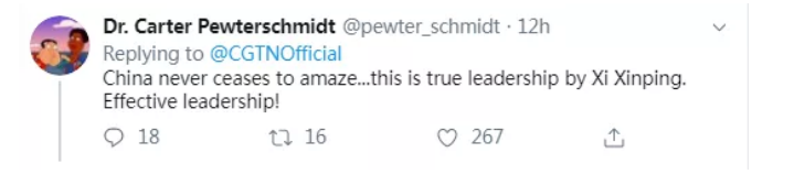 “中國從來沒有停止震驚世界,這是真正的領導力!高效的領導力!”
