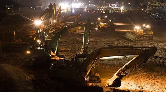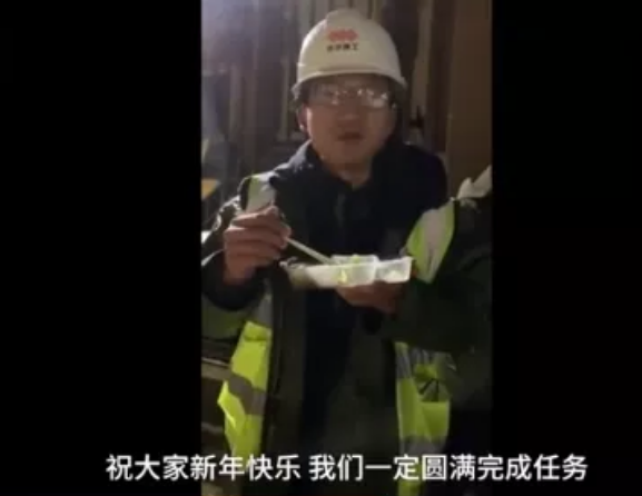 昨日除夕,上百臺機械在施工現場同時開挖,工人們連晚飯也只是站在馬路邊上草草解決,又繼續投入戰斗。