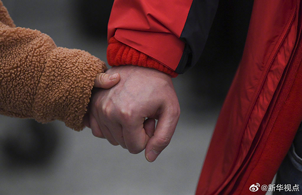 1月26日,重慶市醫(yī)療隊隊員、重慶醫(yī)科大學(xué)附屬第一醫(yī)院呼吸內(nèi)科主治醫(yī)師蔣磊同未婚妻高佳在重慶江北國際機場道別。兩人原定于2月2日領(lǐng)結(jié)婚證,但現(xiàn)在只能推遲了?!半m然我很擔(dān)心他,也很舍不得他,但我還是鼓勵他去好好工作”,高佳說,“我們現(xiàn)在計劃改在5月20日再去領(lǐng)證,我希望他加油,我等我的英雄勝利歸來”。他們的短暫離別,將換來更多人早日團聚。26日晚,130余名醫(yī)務(wù)工作者組成的重慶市醫(yī)療隊從重慶出發(fā),前往湖北省孝感市支援。(記者 王全超)