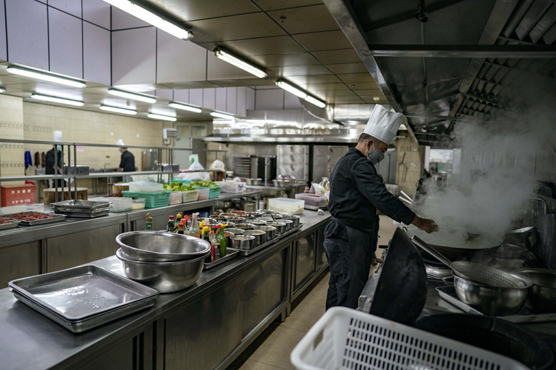 1月29日,云南省一安置點的廚師在為湖北滯留旅客準備晚飯。